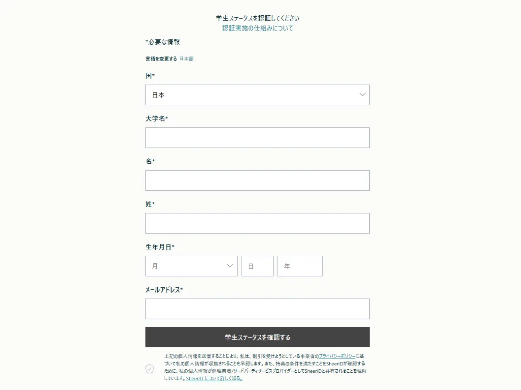 SheerIDに対応する大学の学生であれば、だれでも対象です。